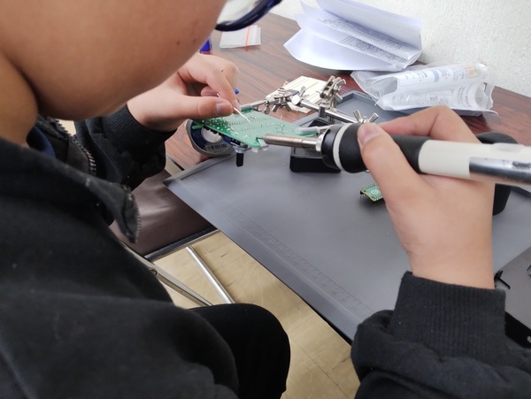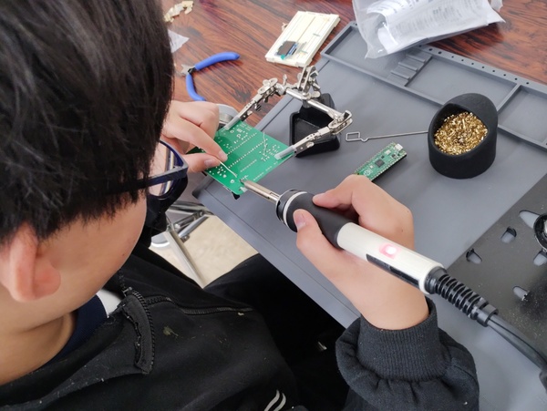 今日はスペシャルな先生が助っ人に来てくれたので、はんだ付けもはかどります。