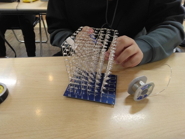 LEDキューブの最後の組み上げ。あと少し、見ているこちらがワクワクします。