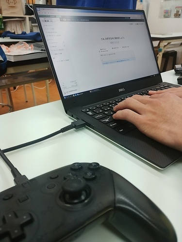 任天堂Switchのコントローラーを持ってきたので、何かと思ったら…...。自作ゲームをコントローラーで動かしたいらしいということです。なるほど、ゲームを動かすならゲームコントローラーが使いやすいです。